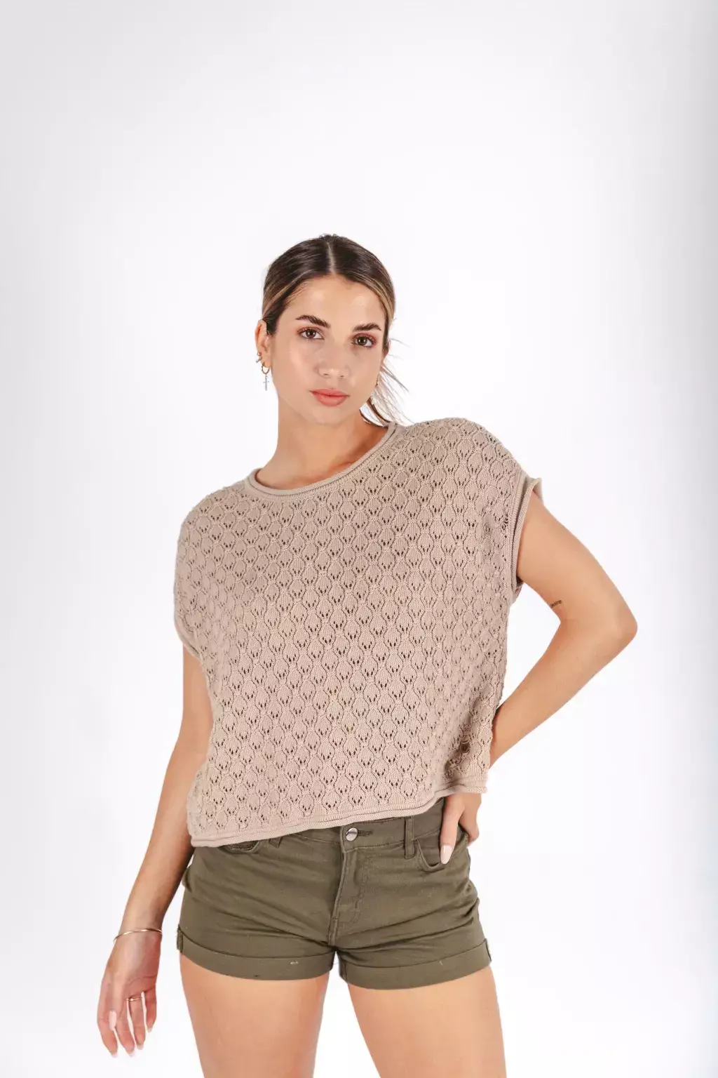 Ideal para combinar con jeans o faldas, su textura liviana y calada la hace ideal para días cálidos, manteniéndote fresca sin perder elegancia.