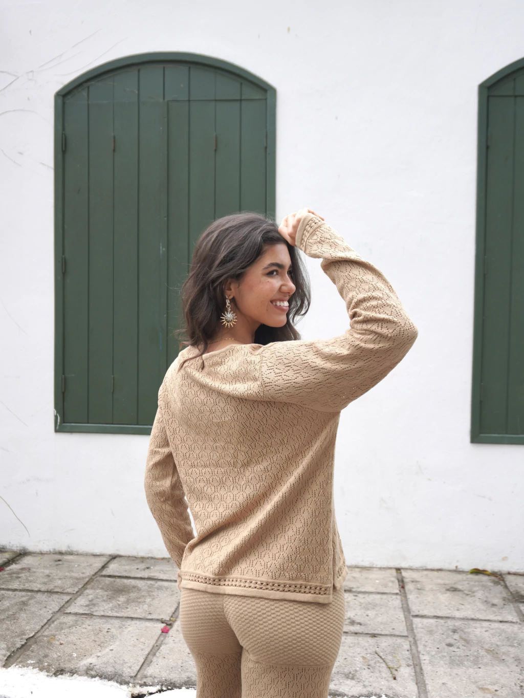 Pantalón de tiro alto y calado en algodón, con caída amplia y romántica. Ideal para la playa o una salida , combina comodidad y elegancia natural en cada movimiento.